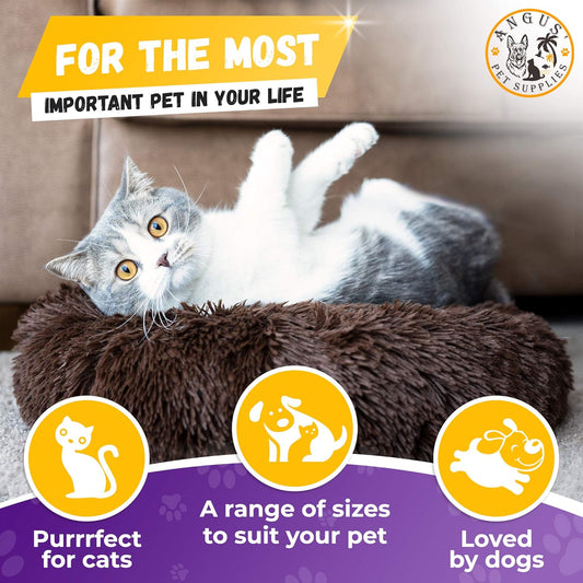 Calming Donut Pet Bed with Blanket - Comfy anti Anxiety, Fluffy Fuzzy round - for Dogs and Cats Who Love to Snuggle - Super Durable, Machine Washable, Water Resistant Base, Multiple Sizes S-XL