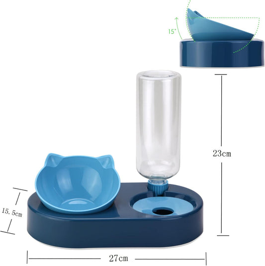 Cat Dog Automatic Water and Food Bowls,Tilted Cat Food Bowl Water Food Bowl Double 0-15°Adjustable Tilted Water and Food Bowl Set,Raised Pet Bowl for Cats or Small Dogs Cat Water Bowl